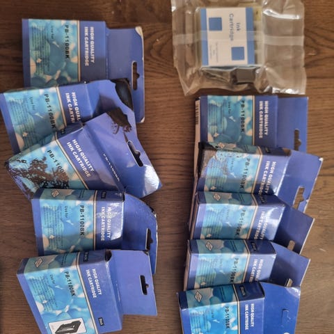 Sælges primært som blækpatroner men der følger også en CANON PIXMA MG6650 kan fåes med hvis man vil have den. Den giver noget print header fejl som jeg ikke kan hitte ud af.