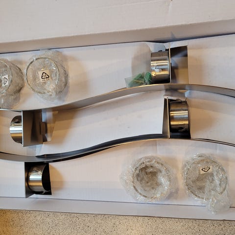 Jysk vægophæng til fyrfadslys i sort metal med trekantet design. Velegnet til vægmontering som dekoration.