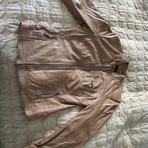 Kort skindjakke – camel farvet – str. L (passer ca. 38)
