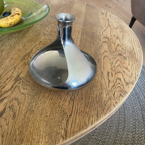 Georg Jensen lysestage med et unikt og moderne design. Fremstillet i metal med en rund form og dekorative elementer. Velegnet til brug med standard stearinlys.