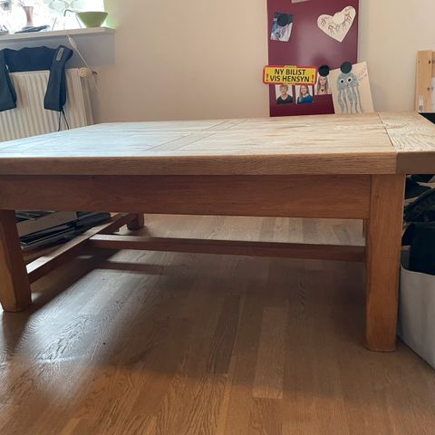 Fint sofabord i massivt sæbebehandlet egetræ fra Rosenfeld snedkeri, med skjult skuffe i den ene side.