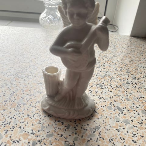 Stort flot lys med engle. 3 væger. Har aldrig været I brug. Diameter 16 cm højden 15 cm.