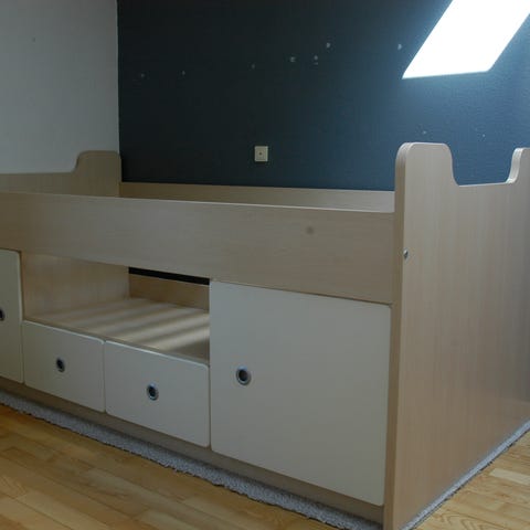 Brugt til mit barnebarn når han skulle overnatte, hvorfor madrassen er kun brugt få gange. Herudover medfølger en sengehest.