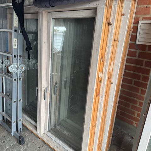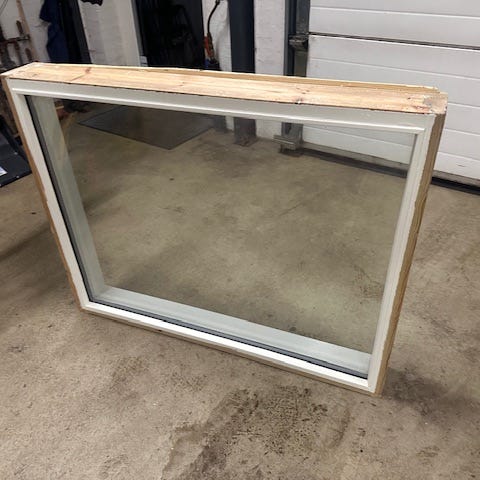 Vindue med ramme i træ, bestående af flere glasfelter. Passer til renoveringsprojekter eller udskiftning af eksisterende vinduer.
