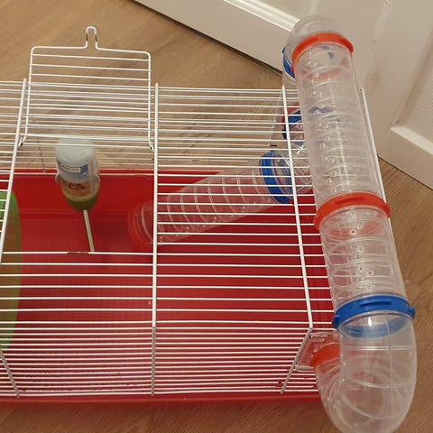 Begge bure er brugte, men i god stand, der er nogle bidemærker og et knækket stykke, men alt fungerer fint. Der er også noge huler, løbehjul og en sandkasse som kan fås med