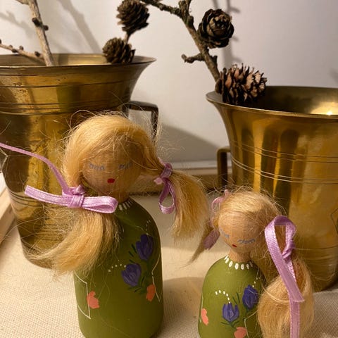 Josef og Maria designet af Anne Beate. Købt i 1969. Figurerne er 9 cm. Stald/krybbe og de resterende figurer sælges på mine andre annoncer.
