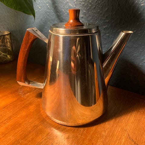 Antik Charmerende Gammel Vintage Kande / kaffekande i metal / blank med låg og tud.
