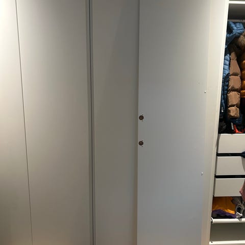 2 stk hvide pax låger som passer til et skab på 229 cm. Den ene er uden brugsspor og den anden har to mærker midt på lågen som kan ses på billedet. Det er dog ikke noget man lægger meget mærke til