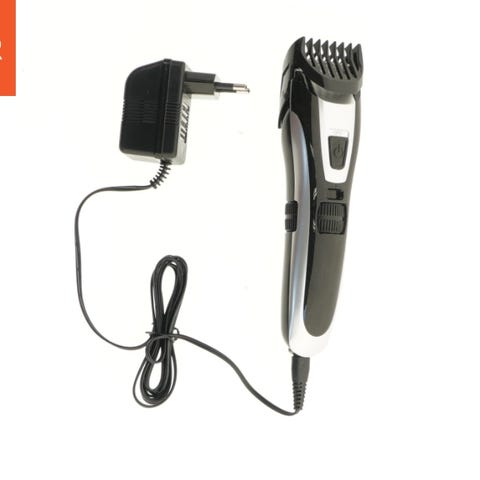 Praktisk genopladelig model med justerbar klippelængde og medfølgende kamme.