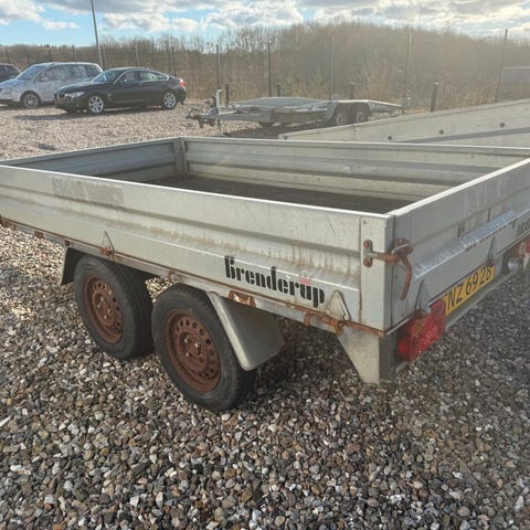 Trailer 1000 kg totalvægt. Trailer med meget fine sider og bund. Lys ok. Med bremser og pressening.