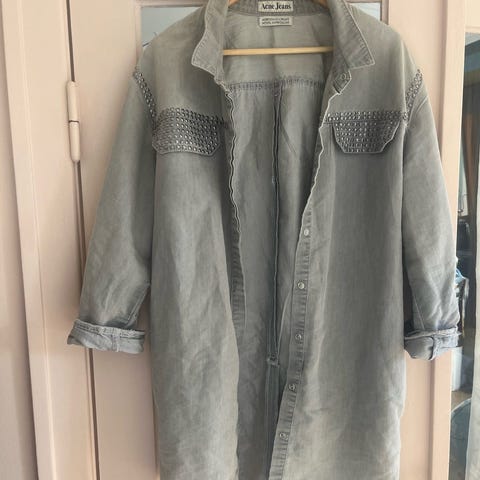 Skjortekjole, Acne, str. S, lilla, sort, God men brugt, cool ternet skjortekjole eller lang skjorte.