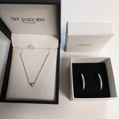 Sif Jakobs , aldrig brugt sølv ankelkæde og halskæde med sten .