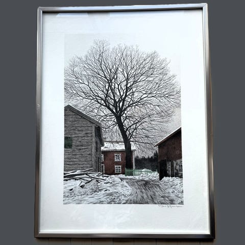 Smuk litografi af C. Göran Karlsson med titlen Rød hötyv. Værket er nummereret 46/70 og signeret, og i god stand og i original ramme med med passepartout.