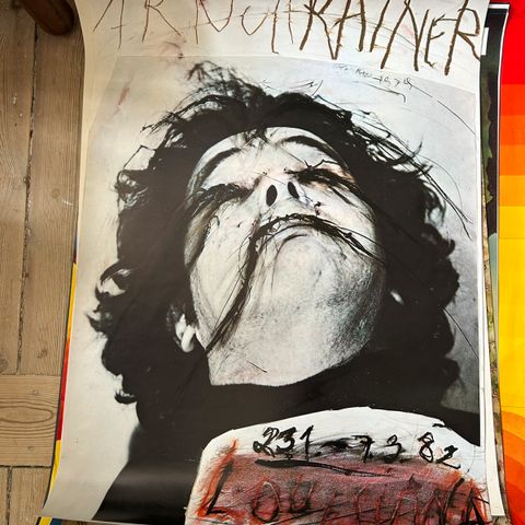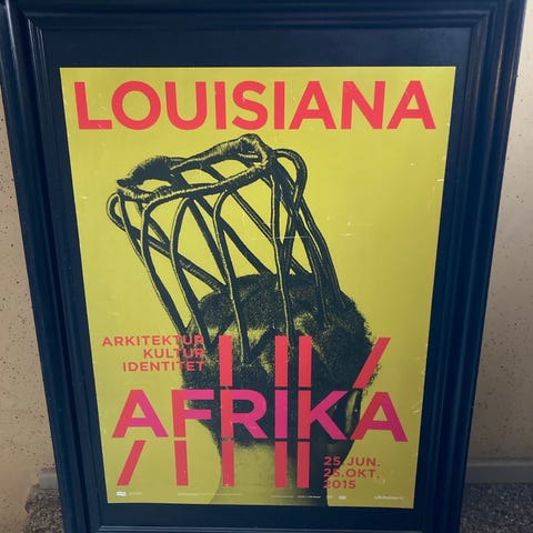 Original Louisiana plakat fra 1979 Outsidere Plakaten viser en kompleks illustration med forskellige figurer og mønstre i levende farver. Velegnet til vægdekoration og samling af kunsttryk.