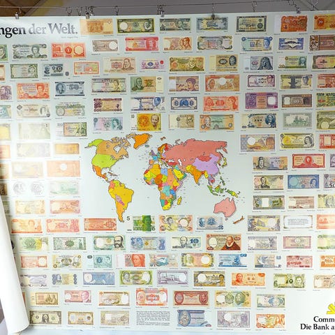 To plakater af danske 100 kroner sedler med klassisk design. Plakaterne er udgivet af Nationalbanken.