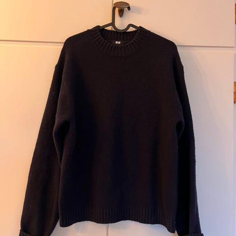 Uniqlo strik i mørkegrå. Model Souffle Yarn Crem Neck Jumper. Str XS. Perfekt stand - brugt meget lidt. Har den samme model i mørkeblå til salg.