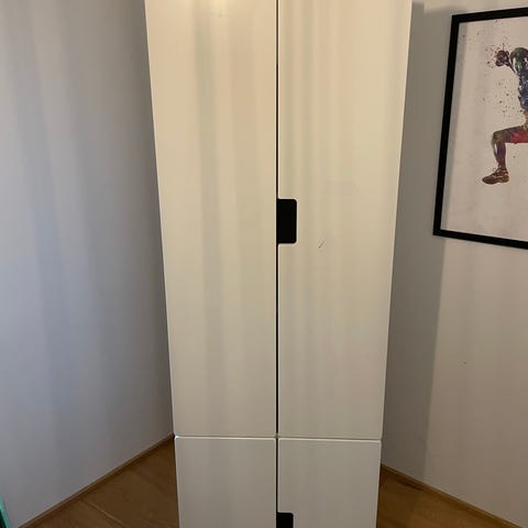 2 hvide Stuva skabe fra Ikea. Modellen er vist udgået af deres sortiment. Beklager at billeder er med "indhold", det følger selvfølgelig ikke med men viser meget godt hvor rummelige de er...