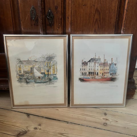 Københavner motiver fra “gamle dage”, Ukendt (af mig), motiv: Christianshavns Kanal, De gamle tryk er ens professionelt indrammede og i absolut god stand.Ydre rammemål er ca 26x36 cm.