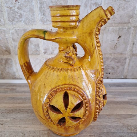 Glaskande med håndlavet design, prydet med grønne og klare bobler og knopper. Brugt 3 gange.