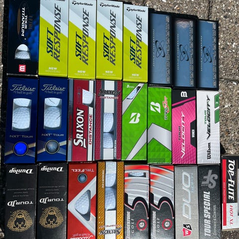 13 stk. Srixon 11 stk. Callaway 3 Stk. Taylermade 5 stk. 5 Titleist 6stk. Willson. 12 stk. ass ialt 50 stk 4 kr. pr, stk.