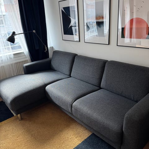 Sælger en komfortabel Cleveland chaiselong sofa fra Ilva i mørkegråt/antracit stof. Perfekt til hygge og afslapning. Chaiselongen er venstrevendt.