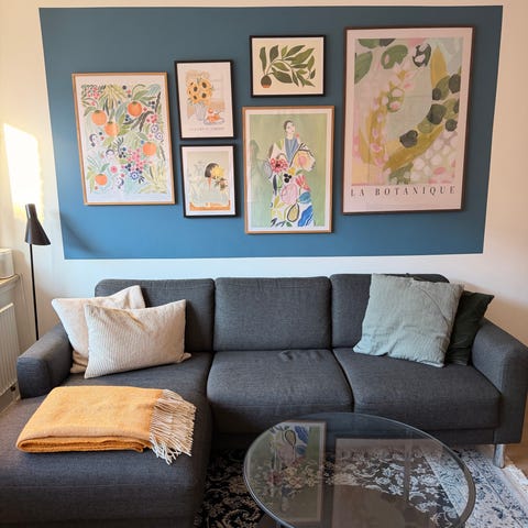 Der er en revne i det sorte stof på undersiden af sofaen.