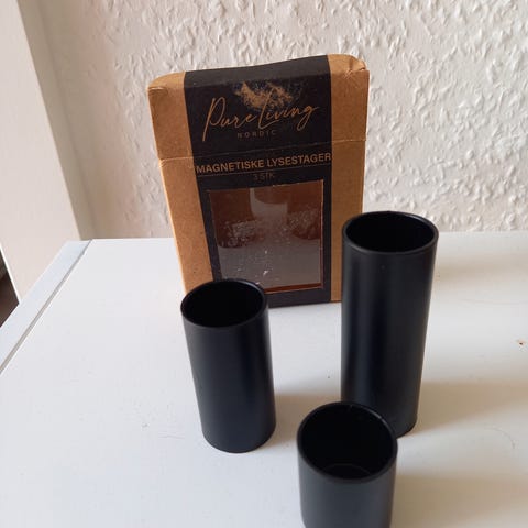 Magnetisk lysestage med 3 lysholdere fra Remember. Højde 10 8 & 6 cm. Bakke 17 cm