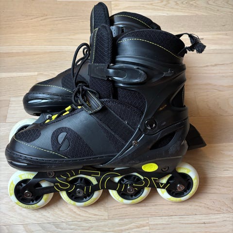 Roces Raptor rulleskøjter i sort farve. Designet til skatingsport med fire hjul. Størrelsen er angivet som 'Andet'. Materiale og køn er ikke specificeret. Str 41