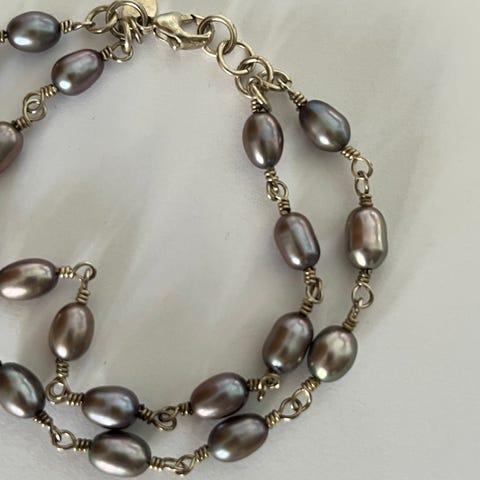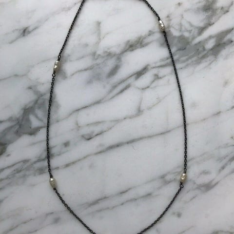 Halskæde, sølv, Carré of Copenhagen, Halskæde i oxyderet sølv fra Carré of Copenhagen med fin rosa ferskvandsperle.