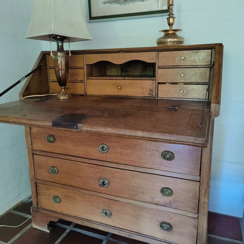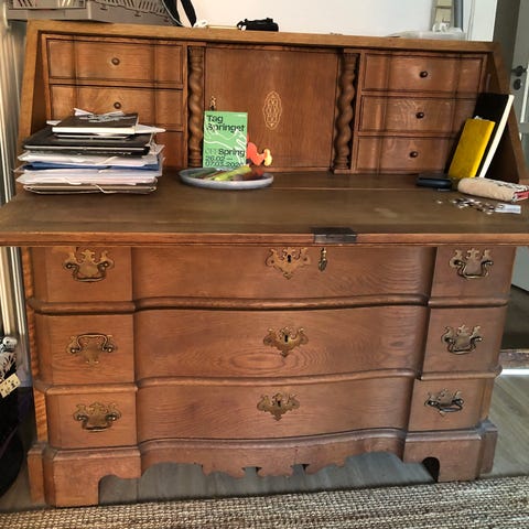 Chatol med fine detaljer. 3 skabe, 1 skuffe og spejl. Defekt i træet/finér på den ene side. Se billede.