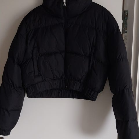 Det er en kort model og måler 56 cm.i længde og lukkes med lynlås - denne fungerer fint.