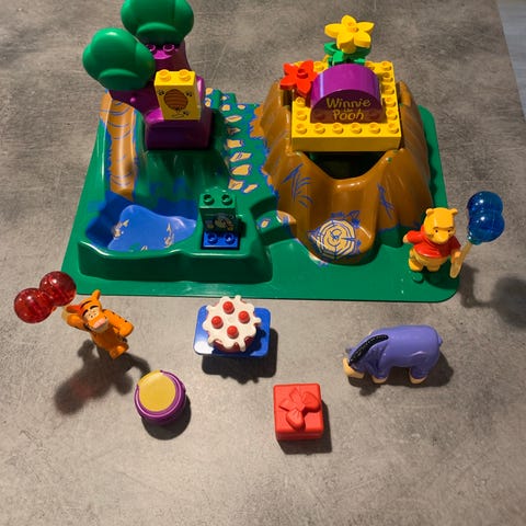 LEGO DUPLO 2979 Peter Plys. Komplet sæt, dog mangler træpladerne med scener og derfor den lave pris for dette sjældne sæt. Fra dyre- og røgfrit hjem.
