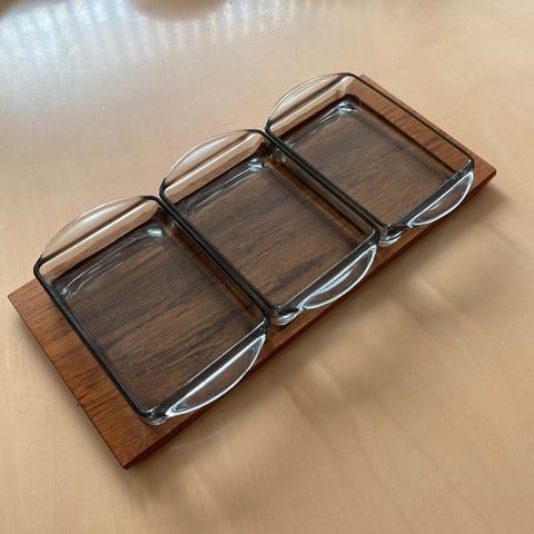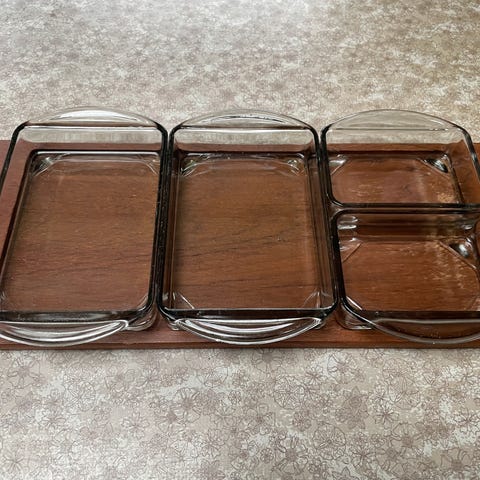 Cabaret fad, teak med to skåle