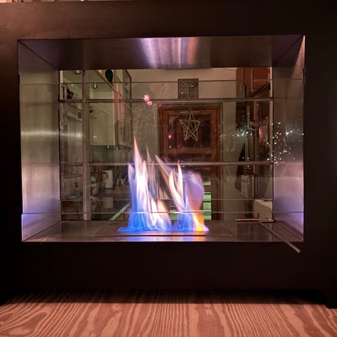 Fin lille bio pejs med glas plader. Den ene plade er kun sat i for at illustrere hvordan de sidder i den. Giv gerne et bud sender ikke