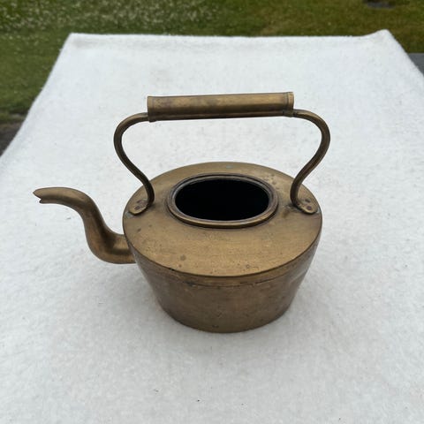 Ældre messingkande med fortinnet inderside – dekorativ og charmerende