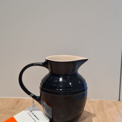 Le Creuset kande 1,1 l i sort stentøj. Kanden har den kendte facon med dekorative rillet detaljer og med Le Creuset mærkning i bunden. Nyprisen er 349. Kanden fremstår som ny. MobilePay foretrækkes.