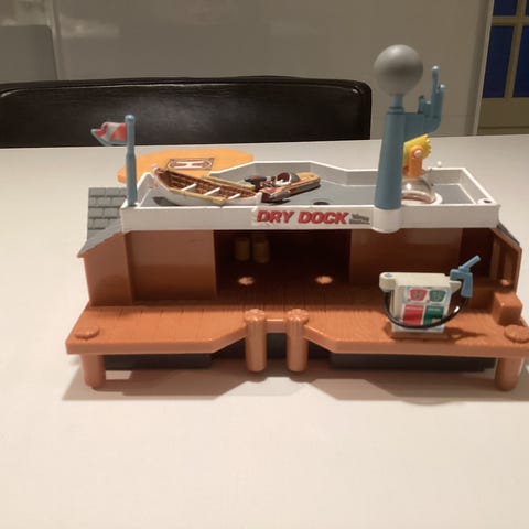 Micro Machines Semi Flatbed trailer - Troy's Racing Boats. Original fra Galoob. Pins til at holde båden på plads er knækket, men den kan stadig sættes på.