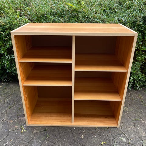 Fyrretræsreol fra 1970’erne med 2 rum og fingertappet