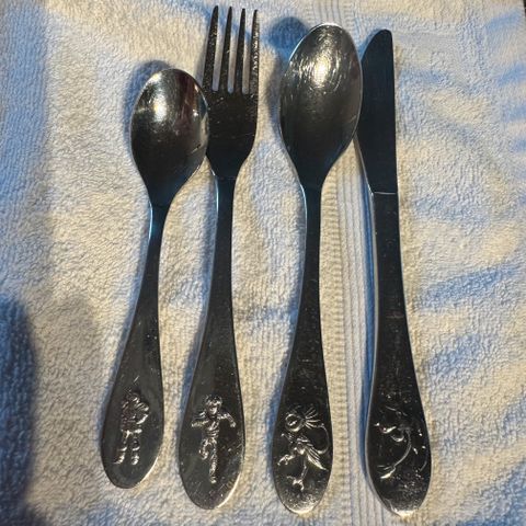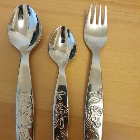 Zwilling spisebestik til børn dekoreret med ridder og drage, lavet af førsteklasses 18/10 rustfrit stål, Tåler opvaskemaskine. Sættet indeholder et komplet spisesæt med kniv, gaffel, ske og dessertske.