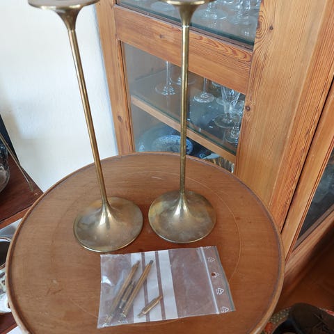 Et par Torben Ørskov lysestager sælges samlet. Højde cirka 13cm Trænger til at blive pudset. Fremstår med brugsspor