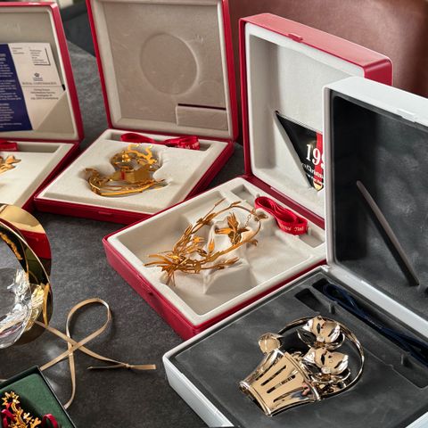 I alt 25 stk Georg Jensen Jul Dekoration Ornaments i forskellige designs. Nogle er ubrugt og nogle lidt brugt. Pris for alle 25 stk er 1500kr.