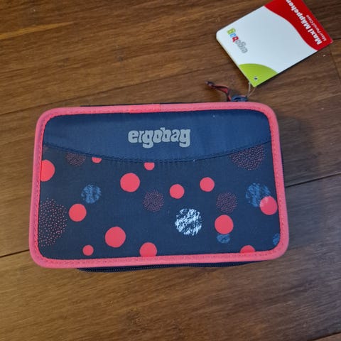 Ergobag penalhuset indeholder også en lille pung med velcrolukning, så barnet kan have lidt småpenge med til skolens kantine. Der er desuden to ekstra elastikstropper til mere tilbehør.
