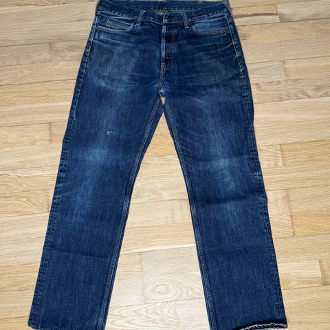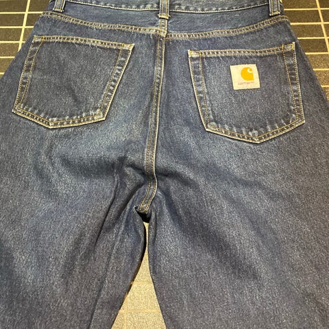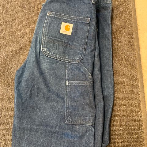 Carhartt Denim Bukser i blå farve. Størrelse W29 i taljen og herrestørrelse 46. Fremstillet i denim materiale, designet til holdbarhed og funktionalitet.