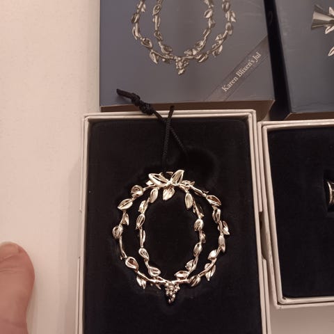 Rosendahl - Karen Blixens jul, stor hjerteuro i sølv. Tilhørende rødt bånd medfølger.