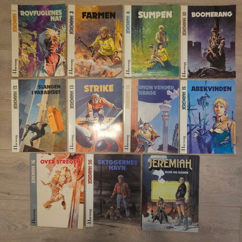Jeremiah Troldmanden tegneserie med illustrationer på omslaget. Bogen har en slidt ryg og brugsspor, men er komplet. Indeholder en historie med mørke og mystiske temaer.
