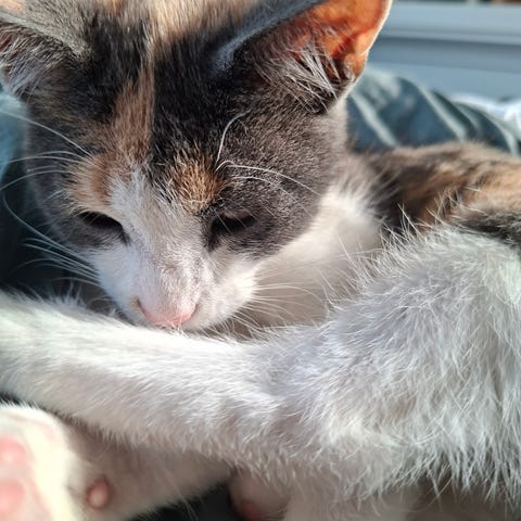 Perle elsker at sidde i skødet og at blive kælet med, og er glad for at lege.