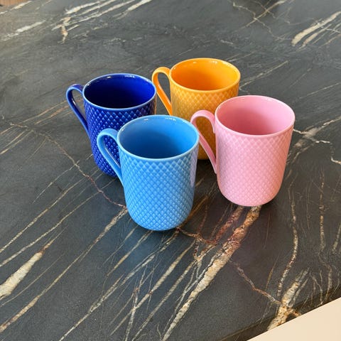 14 krus uden hank. Alle i hel og velholdt stand.