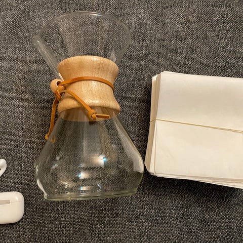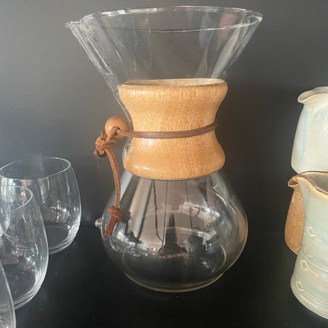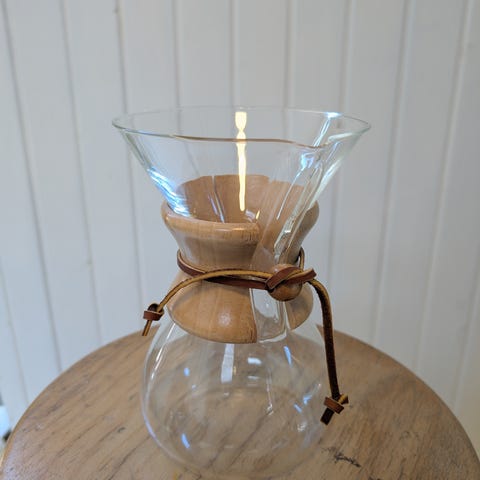 Med denne Chemex kaffebrygger kan du brygge 6-kopper svarende til ca. 9 dl kaffe.