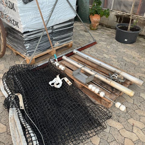 Tennisnet, 2 stk stolper til Tennisnet i aluminum med håndtag, så nettet kan justeres i højden.