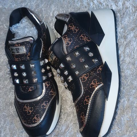 Hvide sneakers med guld detaljer fra Guess i str 39.